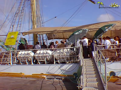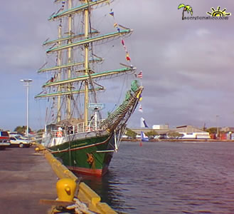 del Nuevo Continente”. Este buque de bandera alemana, de grandes velas verdes y tres mástiles, mide 63 metros de eslora y 8 de manga, lleva consigo 394 toneladas de arqueo bruto y una velocidad de hasta doce nudos. Es una nave que por 80 años fue un barco-faro, es decir, ayudó a otros a llegar a buen puerto. Ahora está convertido en una escuela en el mar, donde los jóvenes no sólo pasan la prueba de vivir como marinos sino que les ayuda en sus materias científicas en la universidad. Su principal meta es fomentar el entendimiento internacional y el encuentro de jóvenes de todo el mundo, mediante el aprendizaje vivencial en el mar.